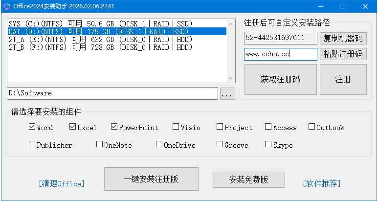 Office 2024 x64 安装助手20260209_自定义安装路径_带清理