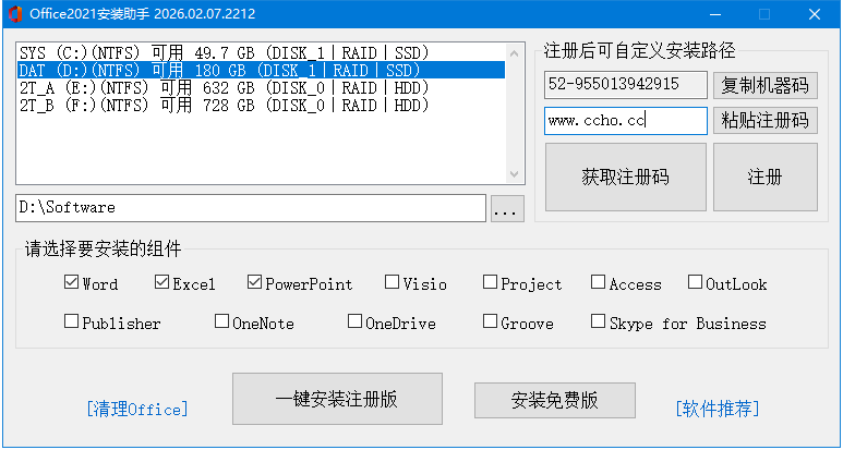 Office 2021 x64 安装助手20260209_自定义安装路径_带清理