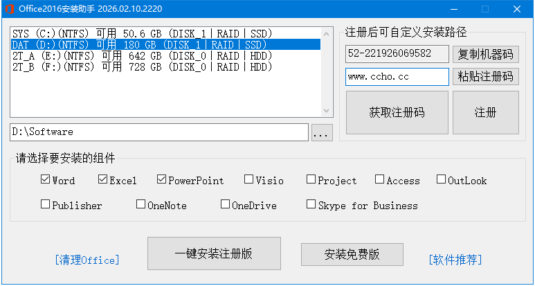 Office 2016 x64 安装助手20260210_自定义安装路径_带清理