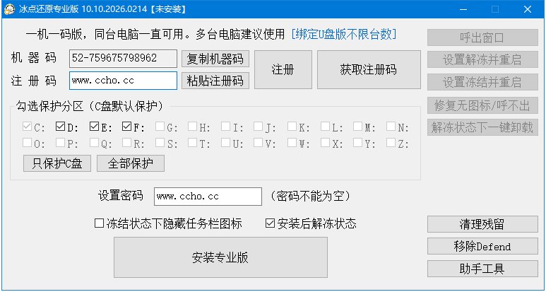 【专业版】自设保护分区|自设密码|可隐图标|永不过期 支持一键解冻|一键冻结|一键呼出登录管理|一键卸载